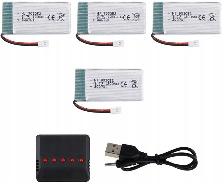 Yunique 4 db 3, 7 V-os 1200 mAh-s Lipo akkumulátor Rc drónokhoz, quadkopterekhez Syma X5SC X5SWALLEGRO